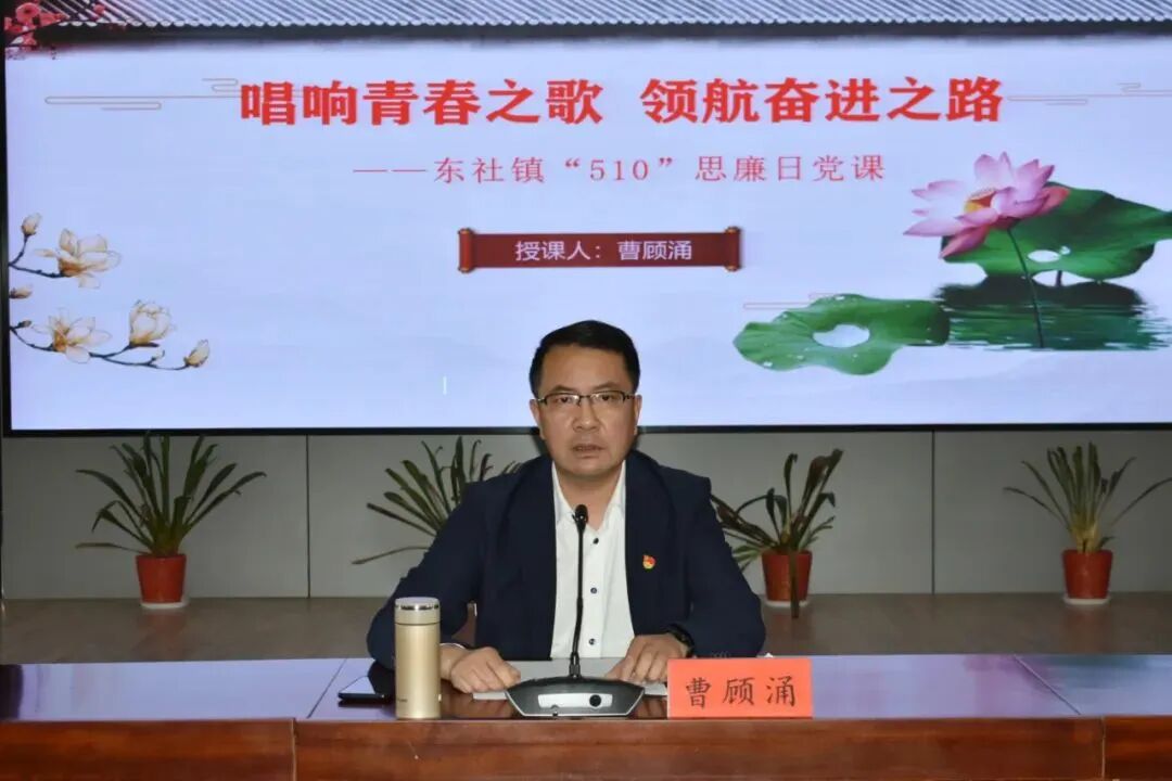 5月11日下午,东社镇开展以“唱响青春之歌 领航奋进之路”为主题的“5·10”思廉日活动。东社镇党委书记曹顾涌为大家讲授廉政党课,30名年轻镇村干部参加学习。